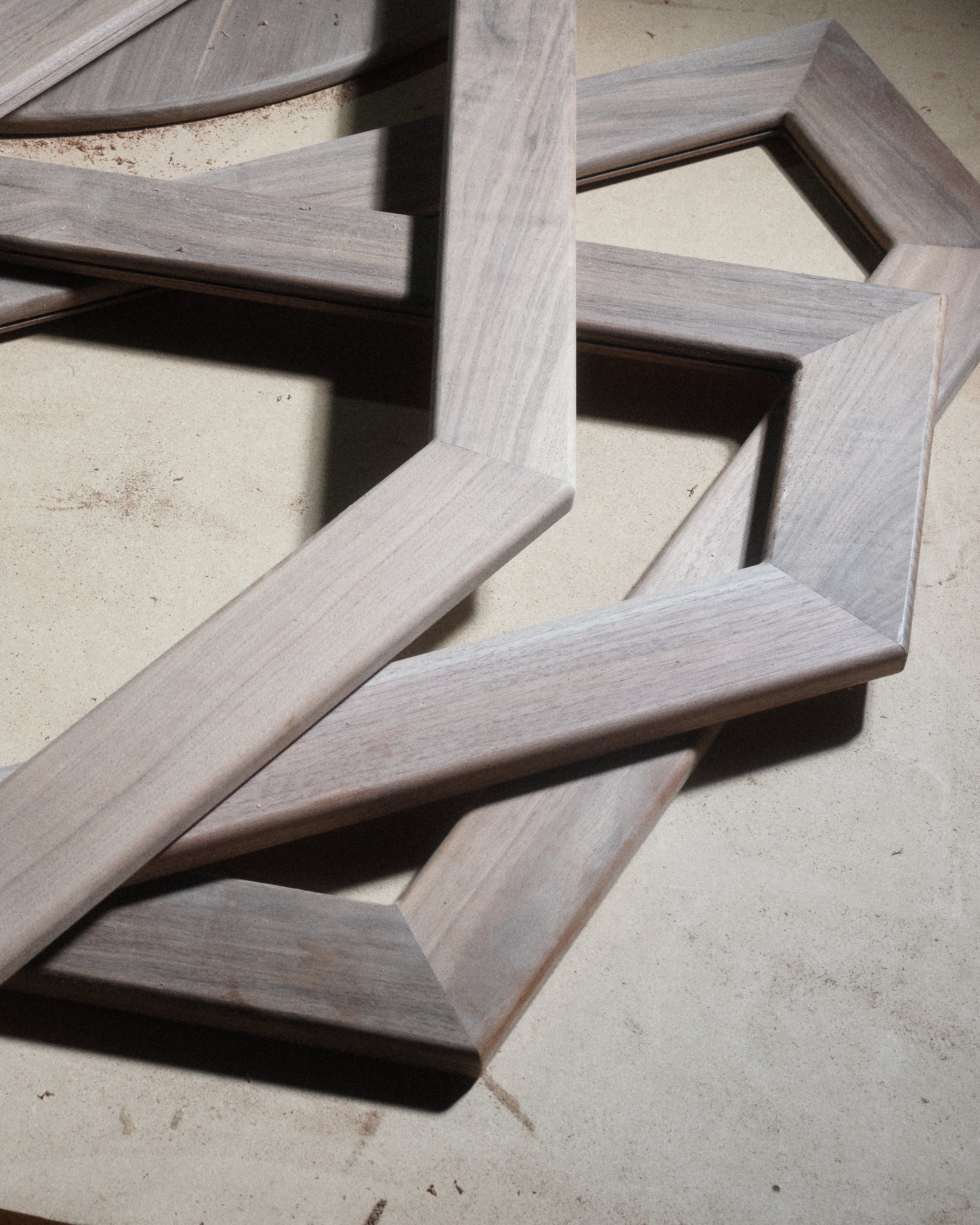 We embraced the natural variations in the walnut—features often overlooked, such as sapwood and knots—treating them not as imperfections, but as essential elements of the design. In this abstract composition, these organic details contribute to a sense of balance, forming a quiet harmony within the material’s inherent diversity.